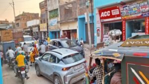 गिद्धौर बाजार में रविवार को ऐसा महाजाम लगा कि लोगों की सांसें थम सी गईं। सड़क पर चारों तरफ वाहनों की लंबी कतारें लग गईं। बाइक, कार, ट्रक और ऑटो – सब एक-दूसरे में ऐसे उलझ गए कि निकलना मुश्किल हो गया। स्थानीय लोगों के मुताबिक, यह जाम अचानक नहीं बल्कि धीरे-धीरे बढ़ते-बढ़ते विकराल रूप ले लिया।