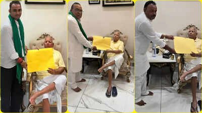 पटना के मनेर से विधायक भाई वीरेंद्र को सिंबल देते हुए