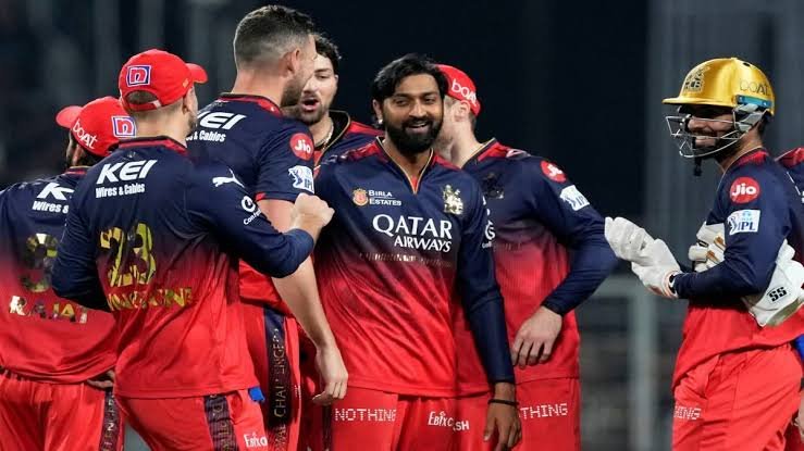 रॉयल चैलेंजर्स बेंगलुरु की प्लेइंग इलेवन: विराट कोहली, फिल साल्ट, देवदत्त पडिक्कल, रजत पाटीदार (कप्तान), लियाम लिविंगस्टोन, जितेश शर्मा (विकेटकीपर), टिम डेविड, क्रुणाल पंड्या, भुवनेश्वर कुमार, जोश हेजलवुड, यश दयाल.