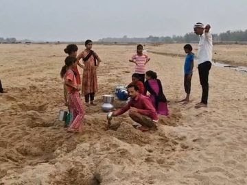 रेत में गड्ढा खोदकर निकलता है जीवन का पानी